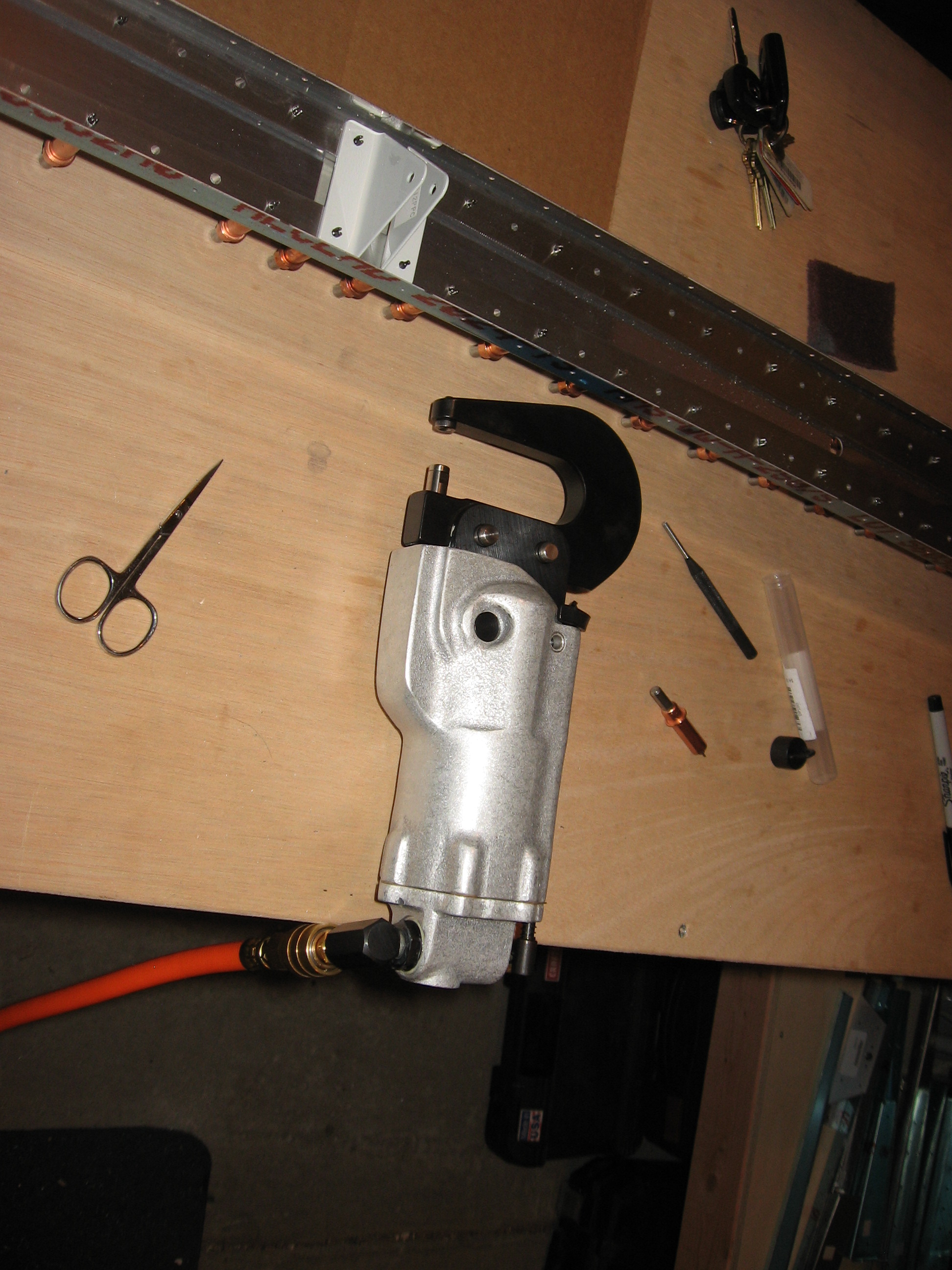 The pneumatic squeezer makes it pretty easy. I won’t be able to use this on the skins later on (except the edges). Those rivets will be set with a rivet gun and bucking bar