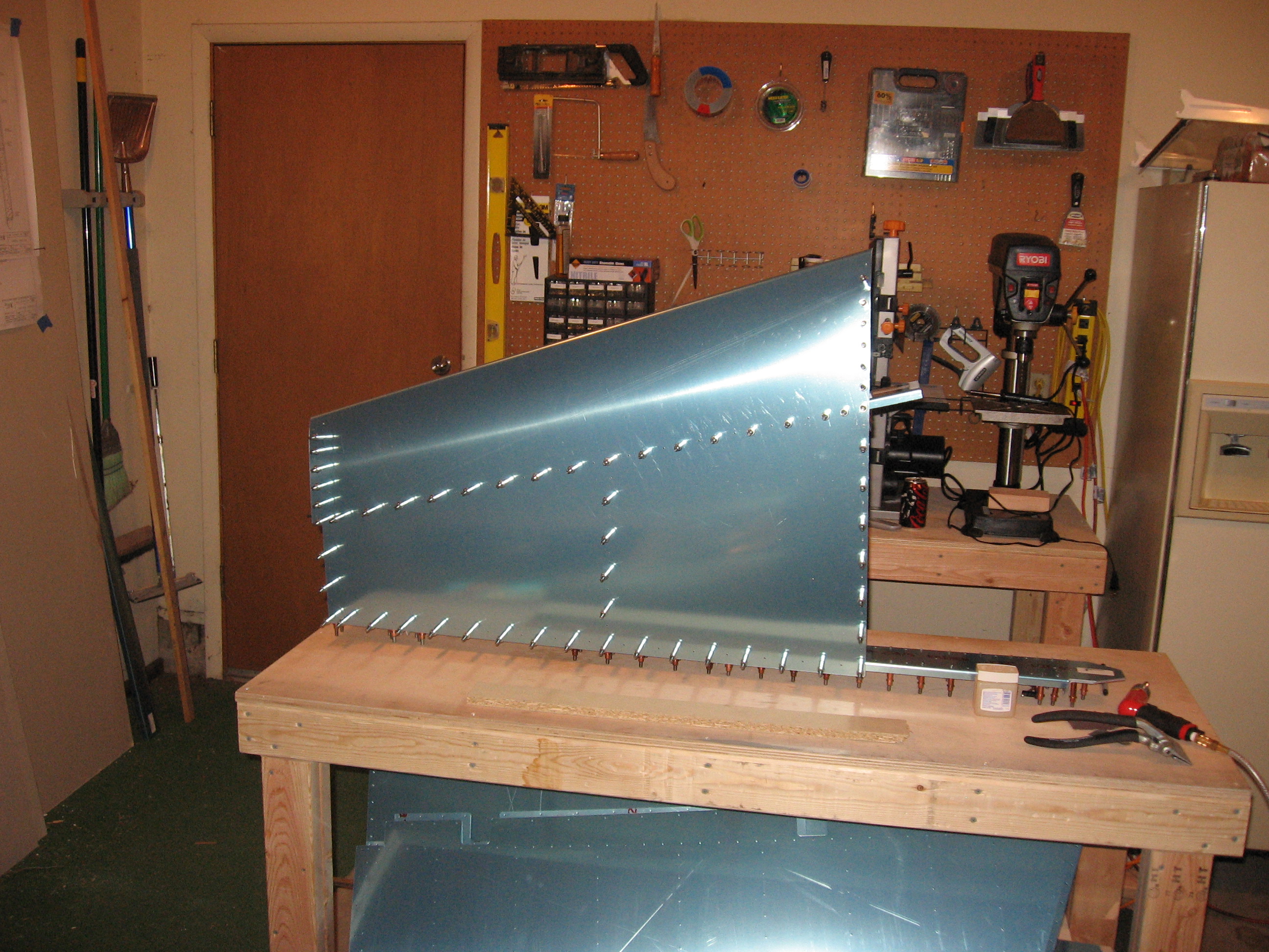 Vertical Stabilizer – Day 2 – 2 hours ryanvanliere / November 4, 2013 Continued work on VS. Match drilled rib to spar attach holes and clecoed on the skin. Match drilled the skin to ribs. Now these are ready to be dimpled, de-burred, and primed for riveting. Share this: Share on X (Opens in new window) X Share on Facebook (Opens in new window) Facebook Like Loading...