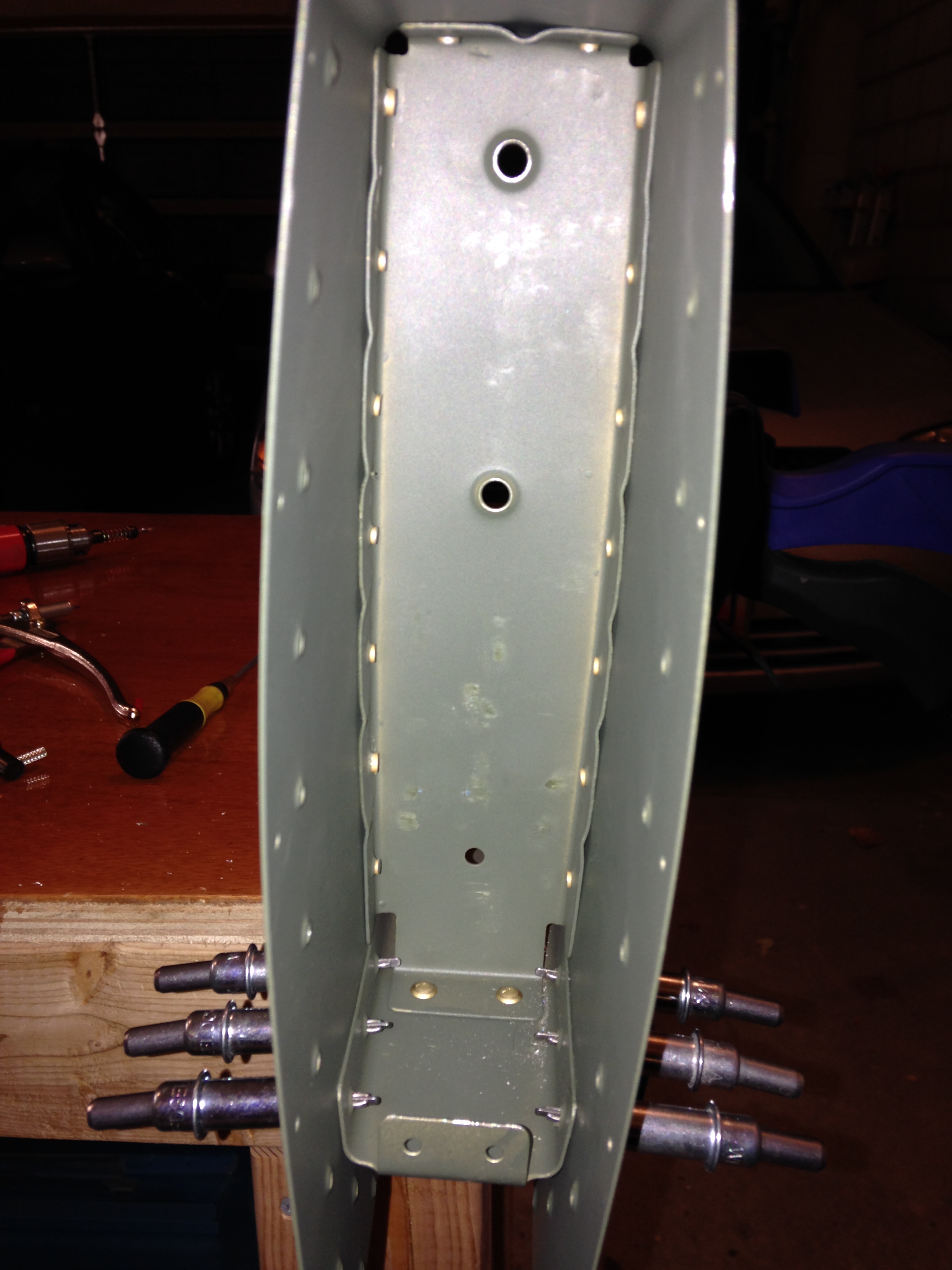 Reinforcement plates riveted to spar.