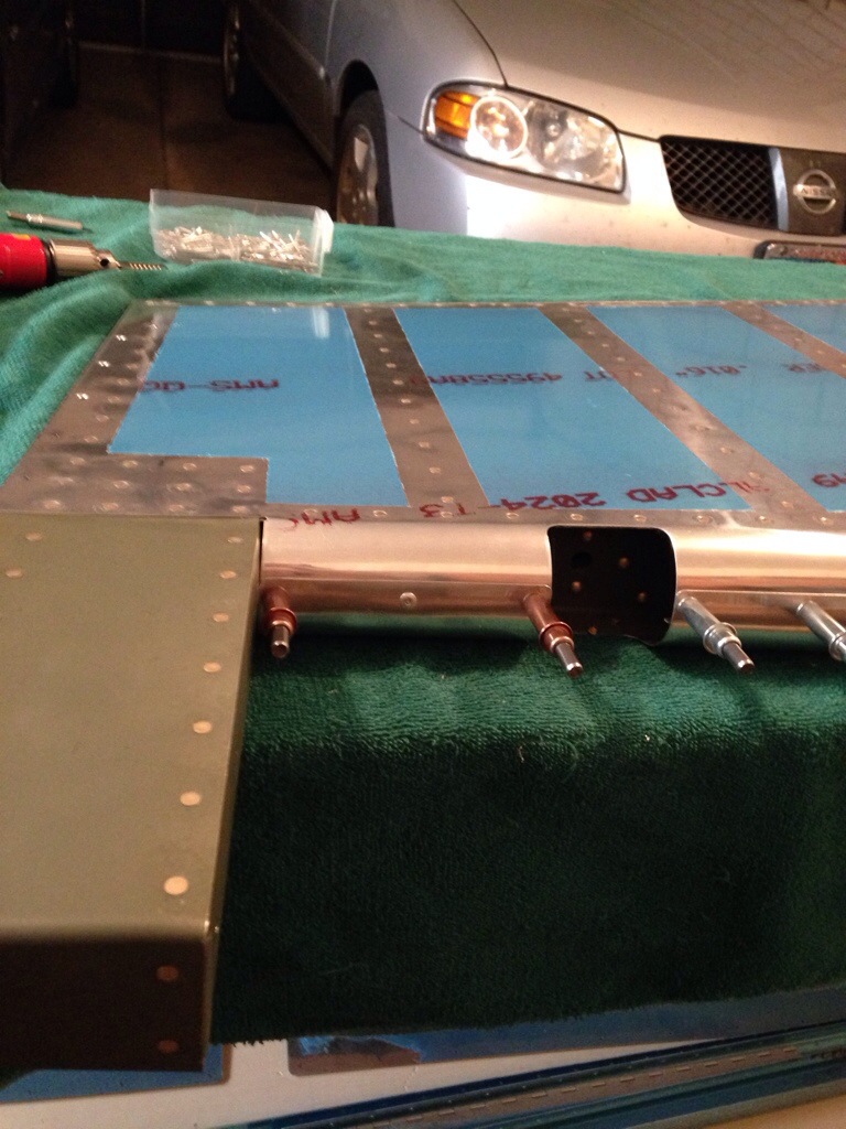Today, I rolled and riveted the leading edge. This wasn’t as bad as I thought it would be. Just followed Van’s instructions exactly. Use a 1 inch (outer diameter) steel pipe (abt 5 ft length) and duct taped it to the edge. Locked a pair of vice grips to it and pushed down and pulled away as I rolled the leading edge. Finished rolling both in about 15 minutes. From here…I clecoed the skins together and then final drilled all holes to #30. Unclecoed, deburred the holes, reclecoed and pop riveted it together. Tomorrow, I will drill out the bad rivets in the trailing edge and then we may be able to call this done.