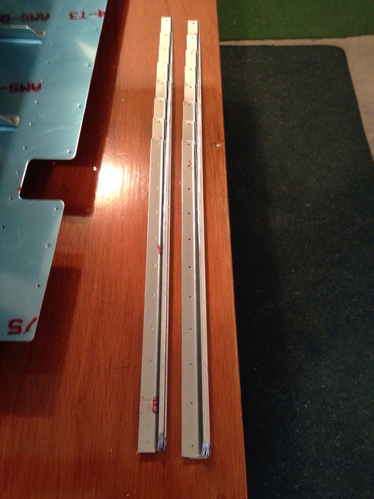 Yesterday I received my new rudder and today I was eager to get started. I decided that the processes used to build the rudder and elevator are so similar that it makes sense to just work on them at the same time. (i.e., trimmed all stiffeners for both rudder and elevator, do all dimpling and match drilling on both). This makes things a little more efficient. Anyhow, today, I finished trimming all the rudder stiffeners.