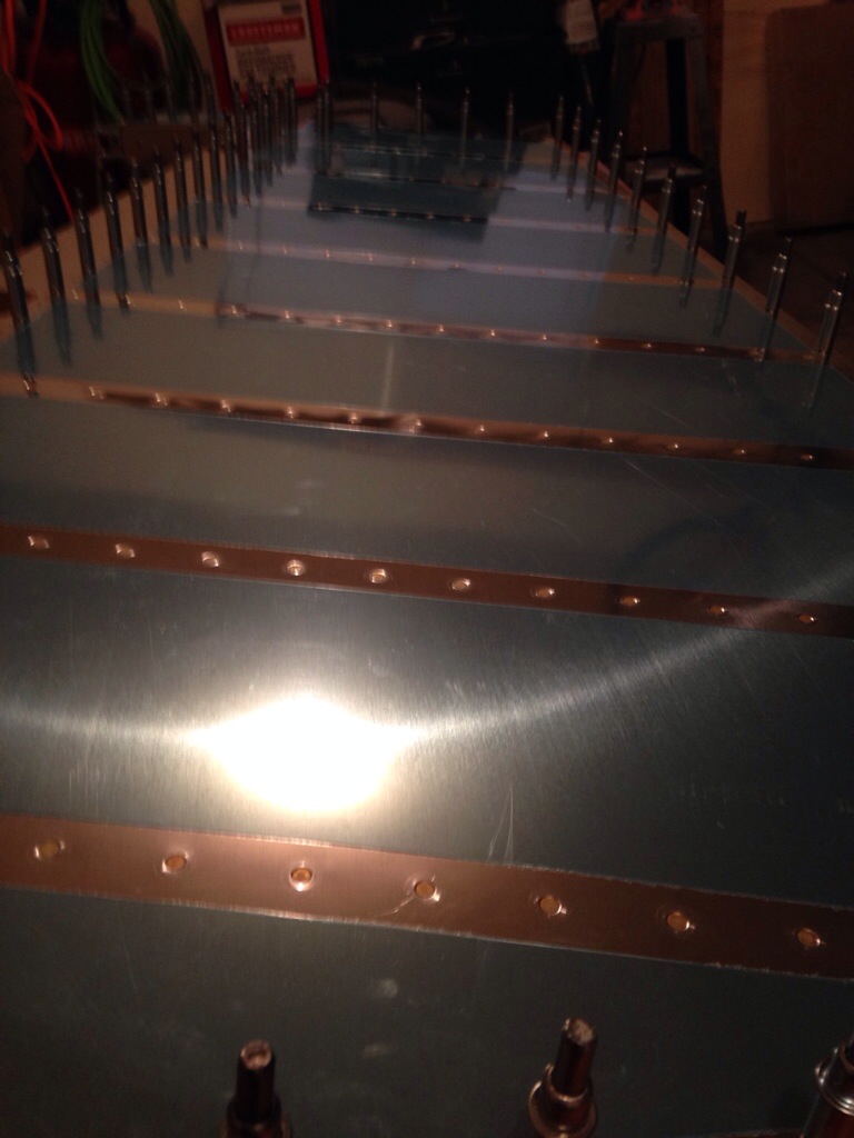 Man…I am flying through this second rudder. The first one seemed to take much longer. I’m starting to get the hang of the rhythm though. Drill, de-burr, dimple, prime, rivet. Today, I clecoed on the skins and final drilled the remaining holes with the exception of the AEX wedge and trailing edge. On the last rudder I think part of the problem with my rivets in the trailing edge were because the holes had become ever so slightly enlarge do to the number of times I ran a drill through each hole. The instructions tell you to cleco it all together and then final drill…then later on you have to use the holes in the trailing edge as a guide to create the aluminum angle so you end up running a drill through the same holes twice. This time I will just use the AEX wedge as a guide for drilling the aluminum angle. (I screwed up the aluminum angle before because I was going to try a trick where you use a squeezer to set the rivets in the trailing edge…which I ended up not doing anyway. The trick involves enlarging the every other hole on the aluminum angle to get the squeezer to fit. So I needed to redo the aluminum angle for sealing the trailing edge). This time I am also using a chuck reamer to final drill the holes. This leaves less of a burr and nicer holes.
